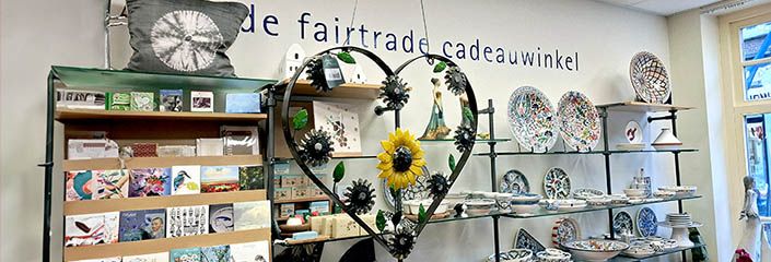Mooie cadeaus, je vindt ze bij de Wereldwinkel. De Wereldwinkel verkoopt originele cadeaus en (h)eerlijke levensmiddelen uit andere culturen. Cadeaus met een verhaal, met liefde gemaakt, met oog voor mens en milieu. Duurzame waterflessen, servies, wenskaarten, sieraden, speelgoed, schone schoonmaakmiddelen, (kook)boeken, Fairtrade gemaakt tassen, (h)eerlijke levensmiddelen, wierook, verzorgingsproducten, beelden, vazen, gerecyclede producten en nog veel meer. Fairtrade, handgemaakt, duurzaam. De producenten - zoals zilversmeden, pottenbakkers en koffieboeren - krijgen een rechtvaardige prijs voor hun producten, zodat ze een menswaardig bestaan kunnen opbouwen. Met jouw aankoop help je hen daarbij en dat geeft 'n goed gevoel! Onze Wereldwinkel wordt gerund door uitsluitend vrijwilligers, zonder winstoogmerk, voor een betere wereld. |