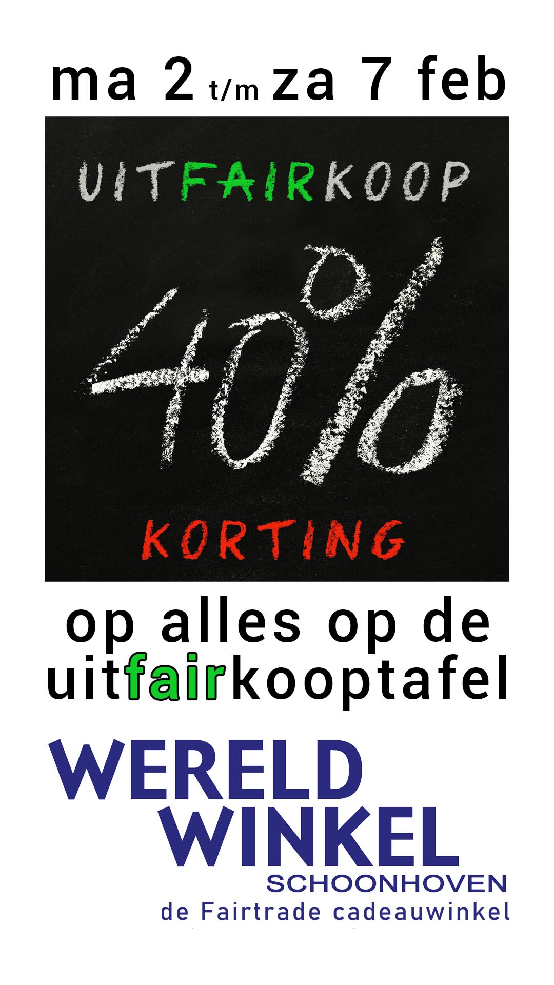 Van maandag 2 t/m zaterdag 7 februari gaan we uitfairkopen.