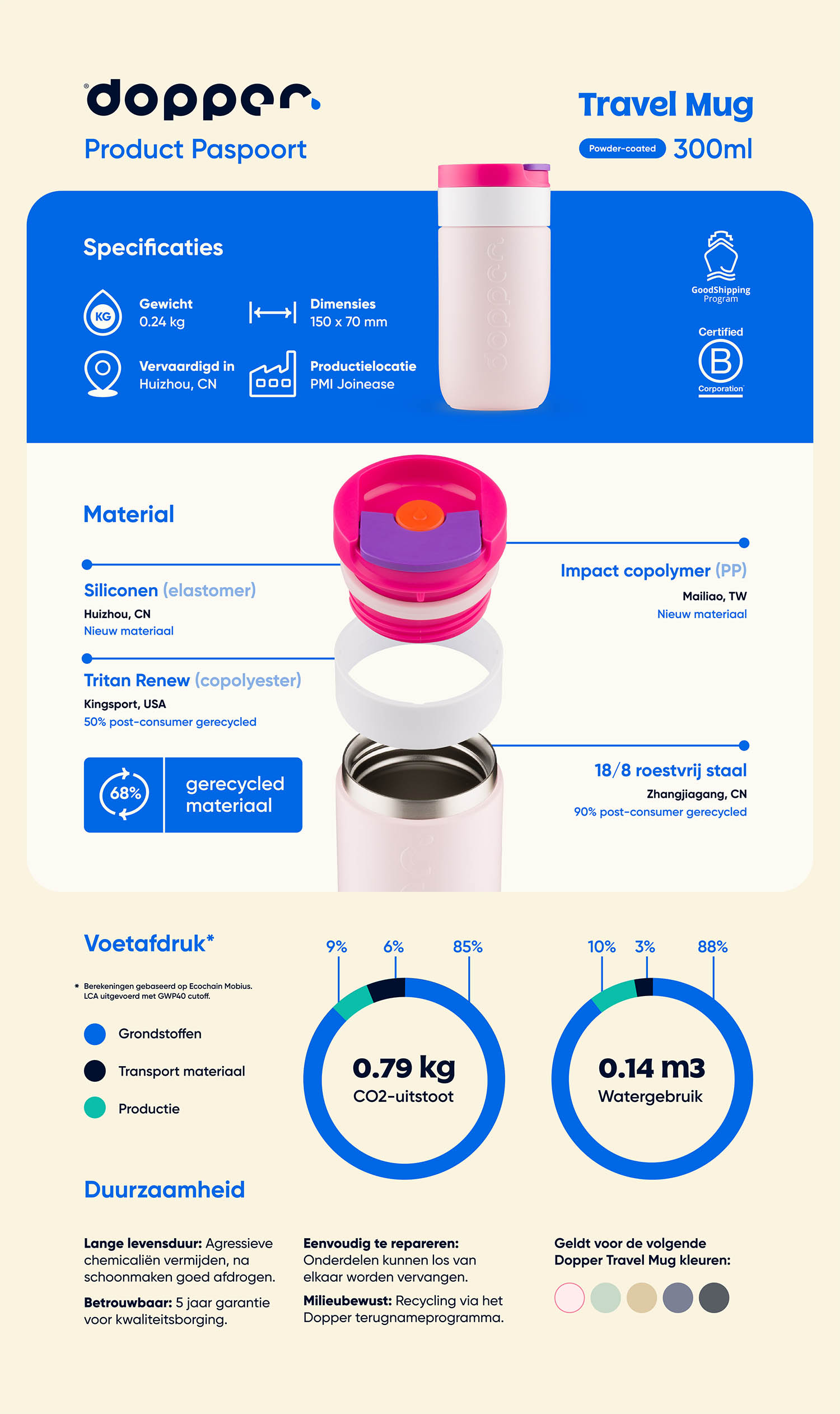 De Dopper Travel Mug wordt op verantwoorde wijze in China geproduceerd volgens de Sedex Members Ethical Trade Audit (SMETA) criteria.<