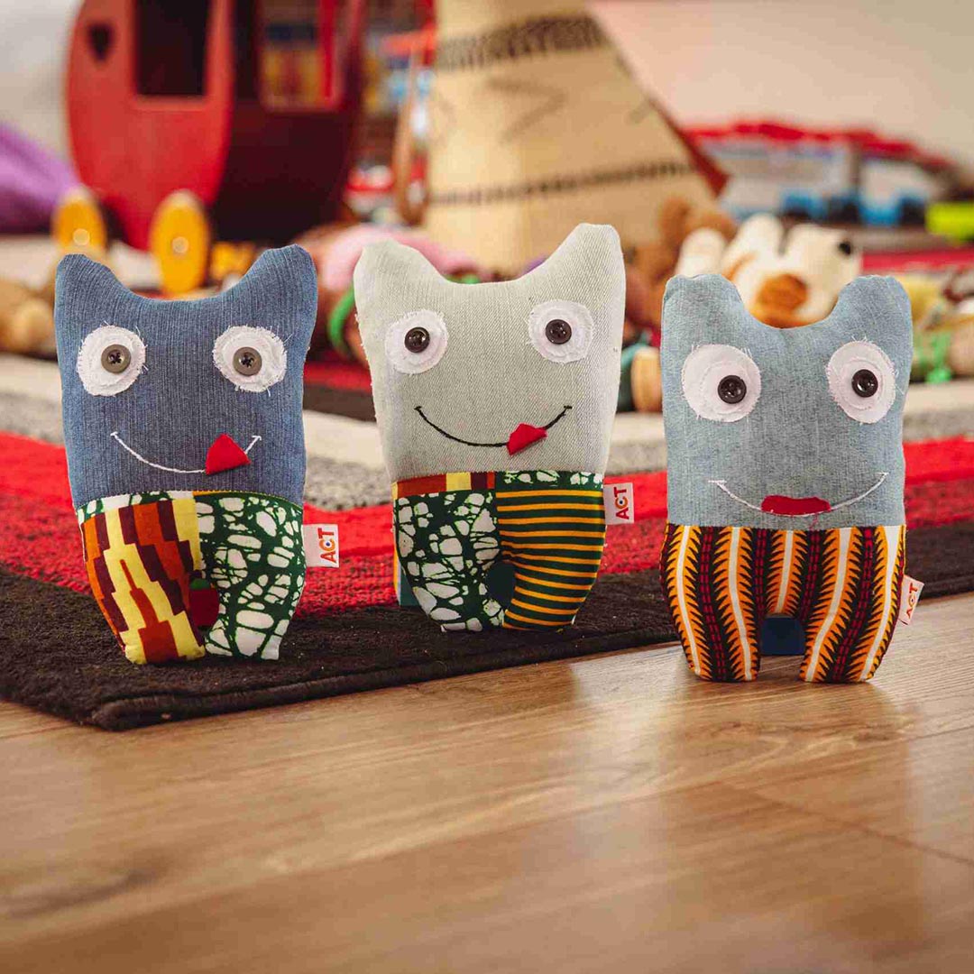 TUMMI's zijn handgemaakt speelgoed, gemaakt van mitumba-kleding die bestemd was voor de stortplaatsen.